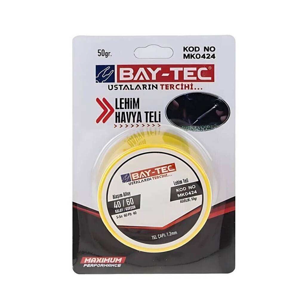 Elektronik ve elektrik işlerinde güçlü, temiz ve uzun ömürlü bağlantılar istiyorsanız, BAY-TEC Lehim Teli, 50 Gram, yüksek kalitesi ve dayanıklılığı ile doğru tercihtir. Hem profesyonel işlerde hem de günlük tamirlerde güvenilir bir yardımcı olarak her zaman yanınızdadır.