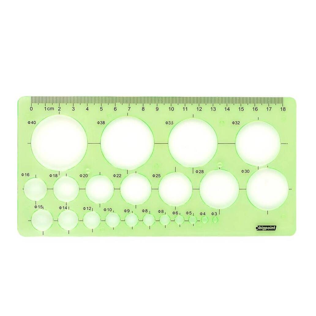 Bigpoint Daire Şablonu, 3-40 mm, 22 Farklı Daire, 18 cm Cetvel, mimarların, mühendislerin ve grafik tasarımcıların yanı sıra öğrenciler için de oldukça kullanışlıdır. Çizim derslerinde, projelerde, teknik resimlerde ve ofis çalışmalarında pratik bir yardımcıdır. Özellikle hassas ölçüm ve net daire çizimi gerektiren işlerde büyük kolaylık sağlar.