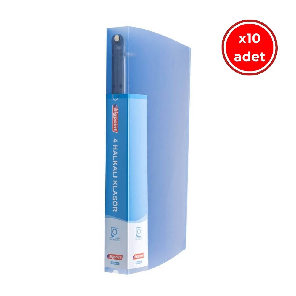 Ürün Adı: Bigpoint Halkalı Klasör, 10 Adet, 4 Halkalı, 150 A4 Kapasiteli, Mavi