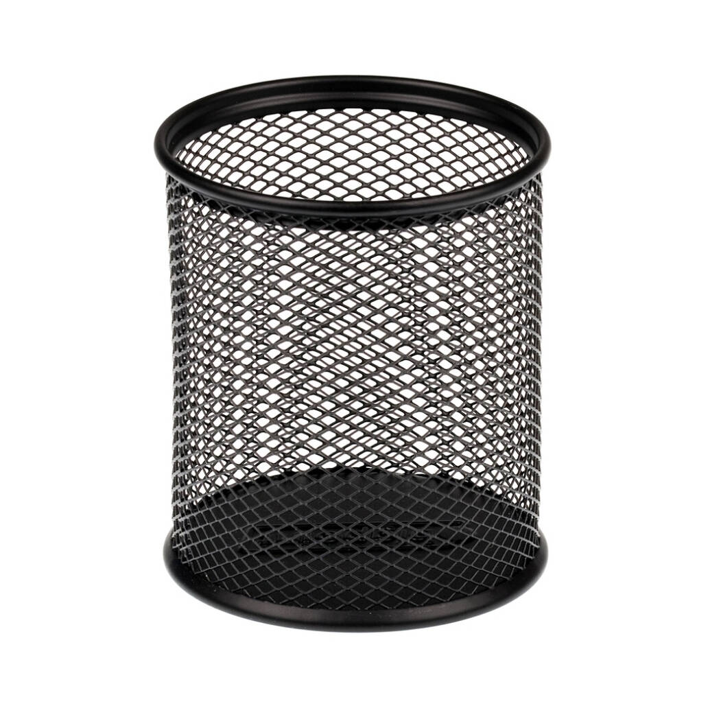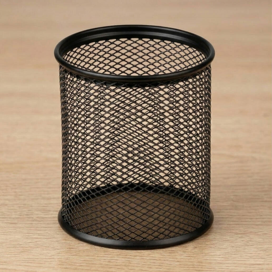 Paslanmaz metal gövdesi, uzun süreli kullanımda formunu korur ve darbelere karşı dayanıklılık sunar. Perfore (delikli) metal yapısı sayesinde hava dolaşımı sağlanır; bu da kalem, makas ve benzeri araçların düzenli şekilde saklanmasına yardımcı olur. Siyah renkli sade tasarımı, masa üzerinde profesyonel ve düzenli bir görünüm oluşturur.