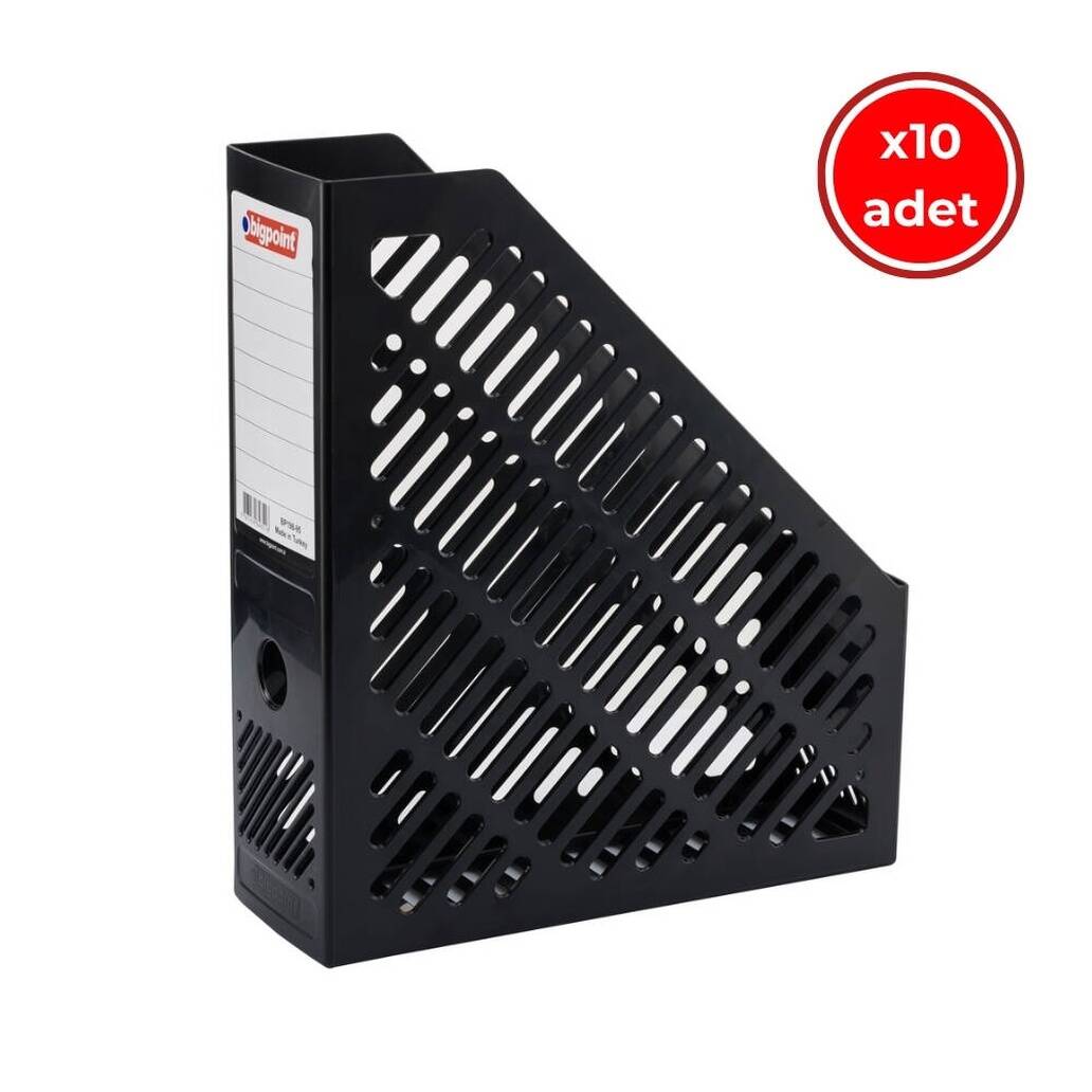 Bigpoint Plastik Kutu Klasör, 10 Adet, Dikey - Yatay, A4 - A5, Siyah, düzenli bir çalışma alanı oluşturmak ve belgelerinizi güvenli biçimde saklamak için mükemmel bir tercihtir. Şık görünümü, dayanıklı yapısı ve çok yönlü kullanım özellikleriyle hem estetik hem de işlevsel bir arşivleme çözümü sunar.