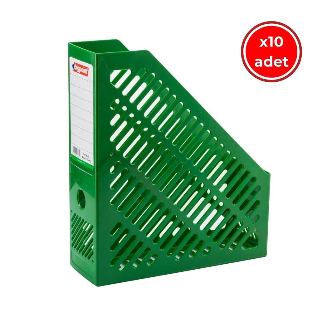Bigpoint Plastik Kutu Klasör, 10 Adet, Dikey - Yatay, A4 - A5, Yeşil, belgelerinizi korurken masaüstü düzeninizi estetik bir görünüme kavuşturur. Sağlam yapısı, esnek kullanım özelliği ve canlı rengiyle hem fonksiyonel hem de dekoratif bir çözüm sunar. Belgelerinizi düzenli tutmanın en pratik ve şık yolu Bigpoint kalitesiyle elinizin altında.
