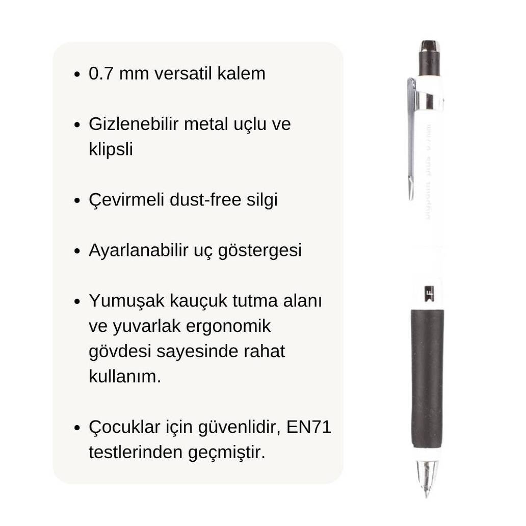 Gelince Haber VerBigpoint | Plus Versatil Kalem, Gizlenebilir Metal Uçlu, Yumuşak Gövdeli Mekanik Uçlu Kalem, 0.7 mm, Beyaz