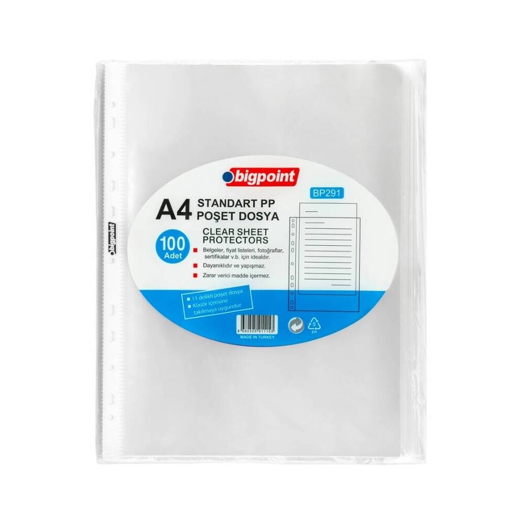 Bigpoint Standart Şeffaf Poşet Dosya, evraklarınızı düzenlemenin ve güvenli bir şekilde saklamanın kolay yolunu sunar. Standart şeffaf yapısı belgelerinizi kolayca incelemenizi sağlarken, delikli yapısı klasör içi kullanım için idealdir. 100'lü paketiyle geniş kullanım imkanı sunarak uzun süreli arşivleme ihtiyaçlarınıza yanıt verir.