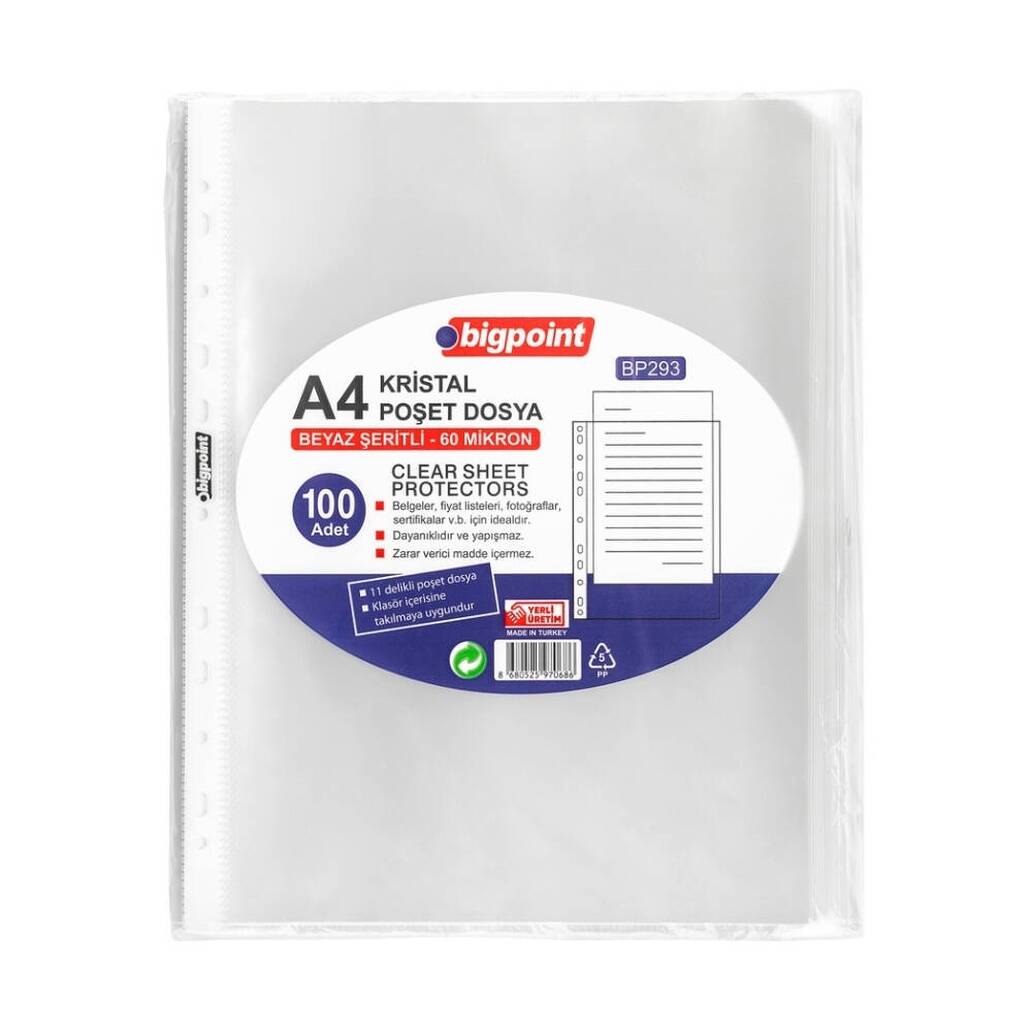 Bigpoint Poşet Dosya, Kristal 60 Mikron, 100’lü Paket, A4, 11 Delikli, farklı alanlarda işlevsellik sunar: