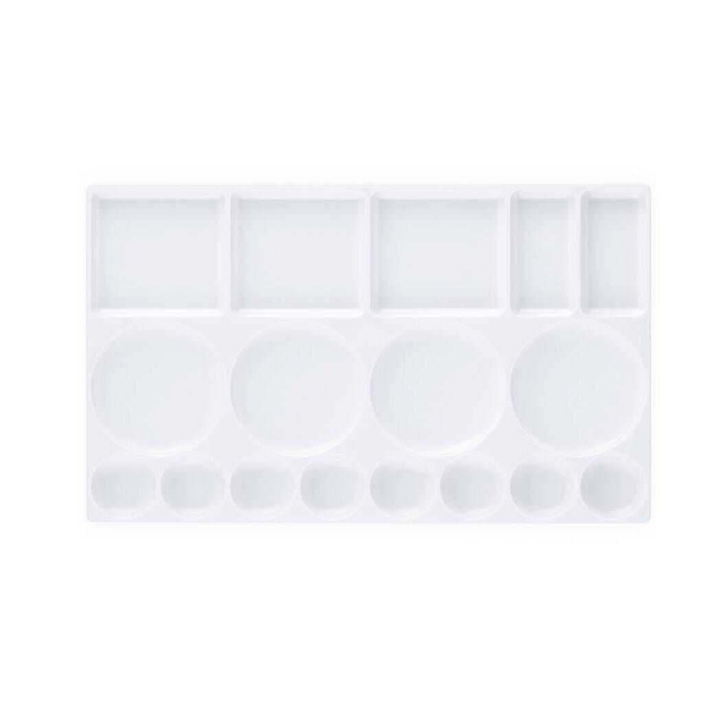 Dayanıklı PS plastikten üretilmiş olması, uzun süreli kullanım ve kolay temizlenebilirlik avantajı sunar. Beyaz yüzeyi sayesinde boya renklerinin gerçek tonlarını net şekilde görmenizi sağlar. Hafif yapısı ile taşınması kolaydır ve hem stüdyo ortamında hem de açık havada yapılan sanat çalışmalarında rahatlıkla kullanılabilir.