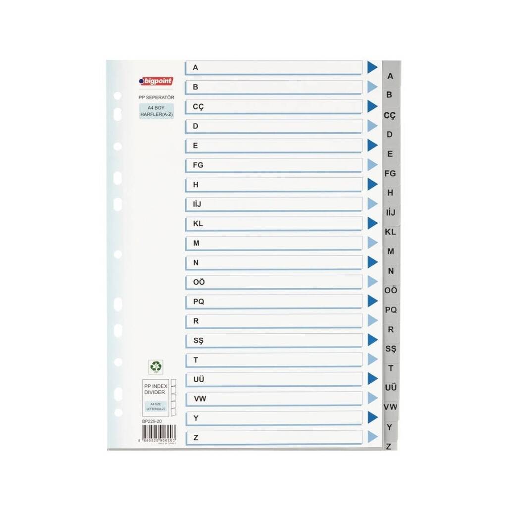 Alfabetik Düzen: A-Z harfli 26 ayrı ayraç ile belgelerinizi hızlıca kategorilere ayırabilirsiniz.