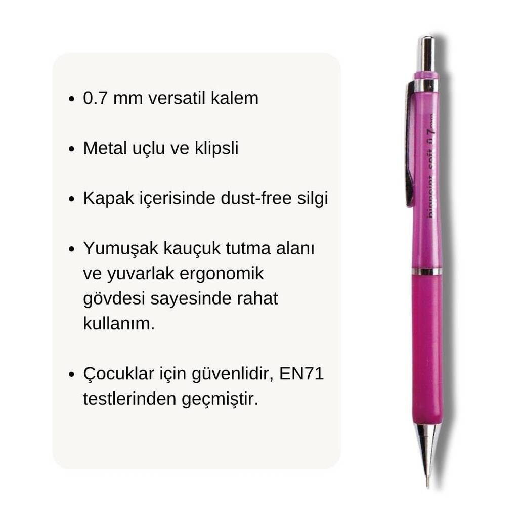 Gelince Haber VerBigpoint | Soft Versatil Kalem, Dayanıklı Metal Uçlu, Yumuşak Gövdeli Mekanik Uçlu Kalem, 0.7 mm, Koyu Pembe