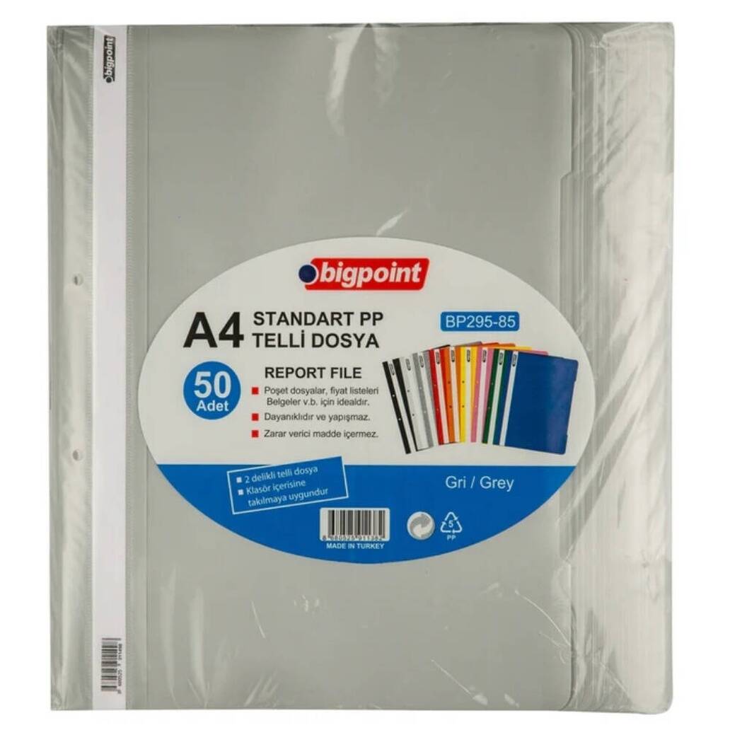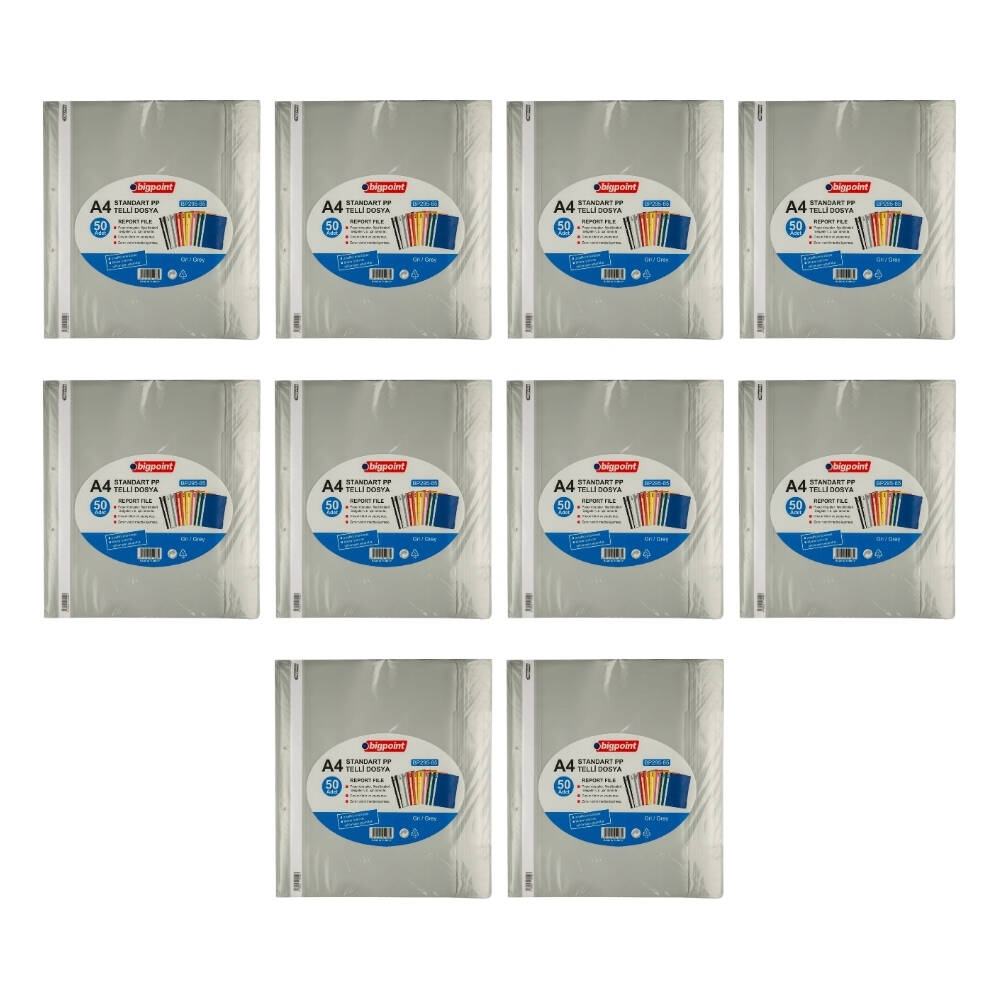 Ürün Adı: Bigpoint Telli Dosya, 10 Adet, 50’li Paket, 180 A4 Kapasiteli, Gri
