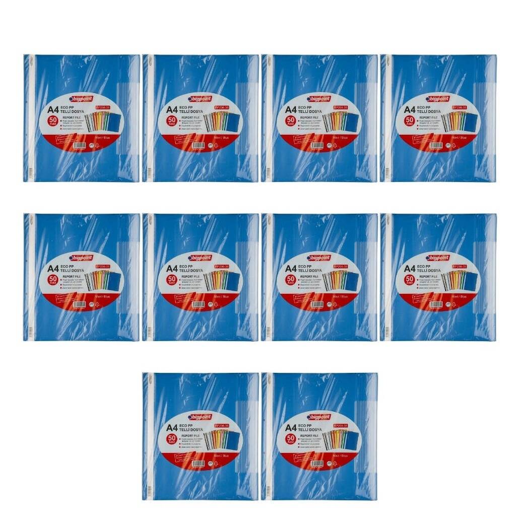 Ürün Adı: Bigpoint Telli Dosya, 10 Adet, 50’li Paket, 180 A4 Kapasiteli, Mavi