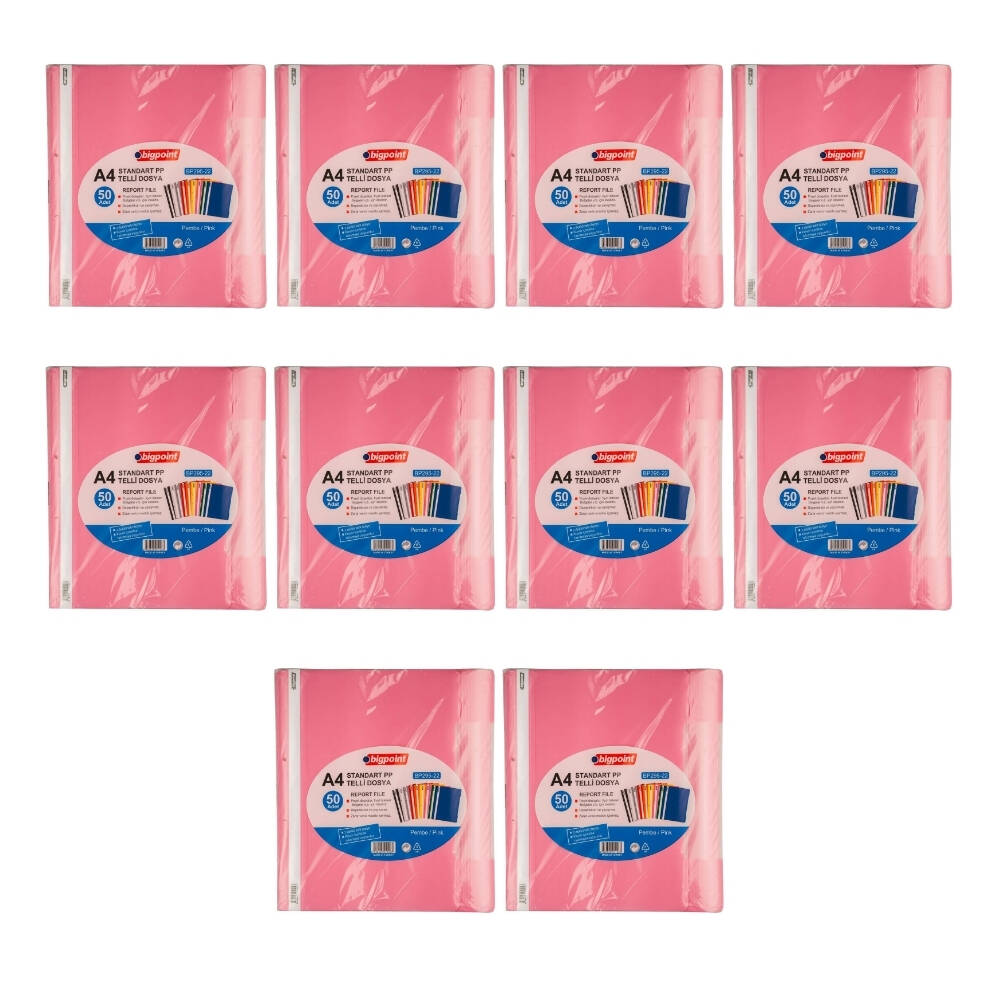 Ürün Adı: Bigpoint Telli Dosya, 10 Adet, 50’li Paket, 180 A4 Kapasiteli, Pembe
