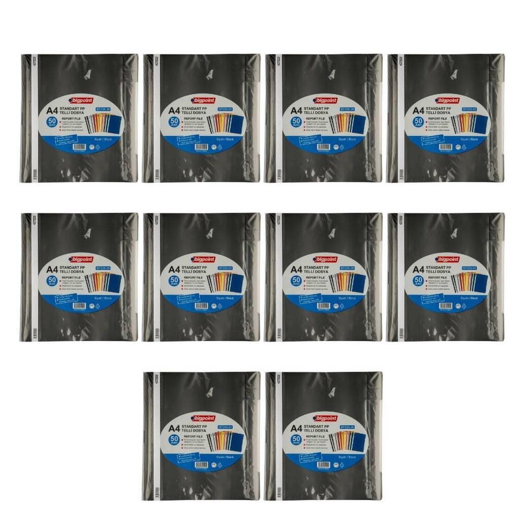 Ürün Adı: Bigpoint Telli Dosya, 10 Adet, 50’li Paket, Standart, A4, Siyah