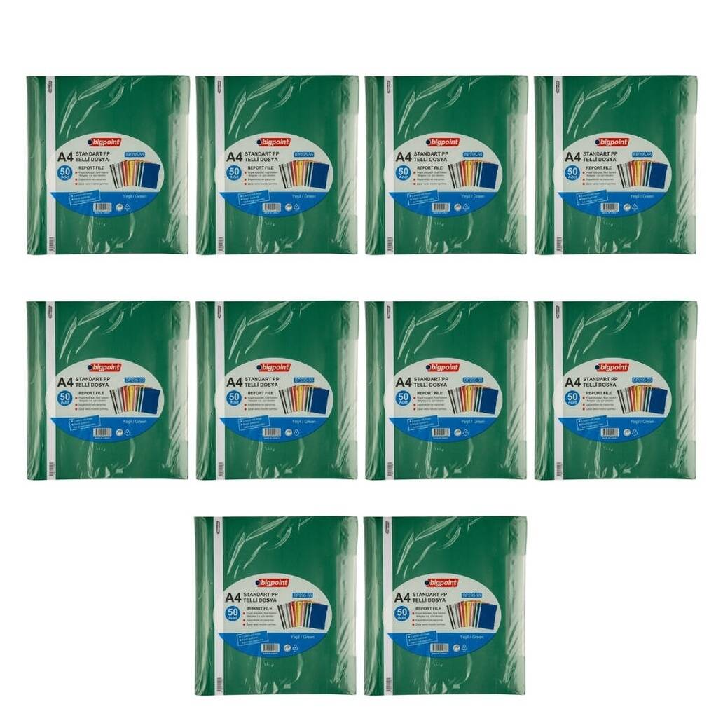 Ürün Adı: Bigpoint Telli Dosya, 10 Adet, 50’li Paket, Standart, A4, Yeşil