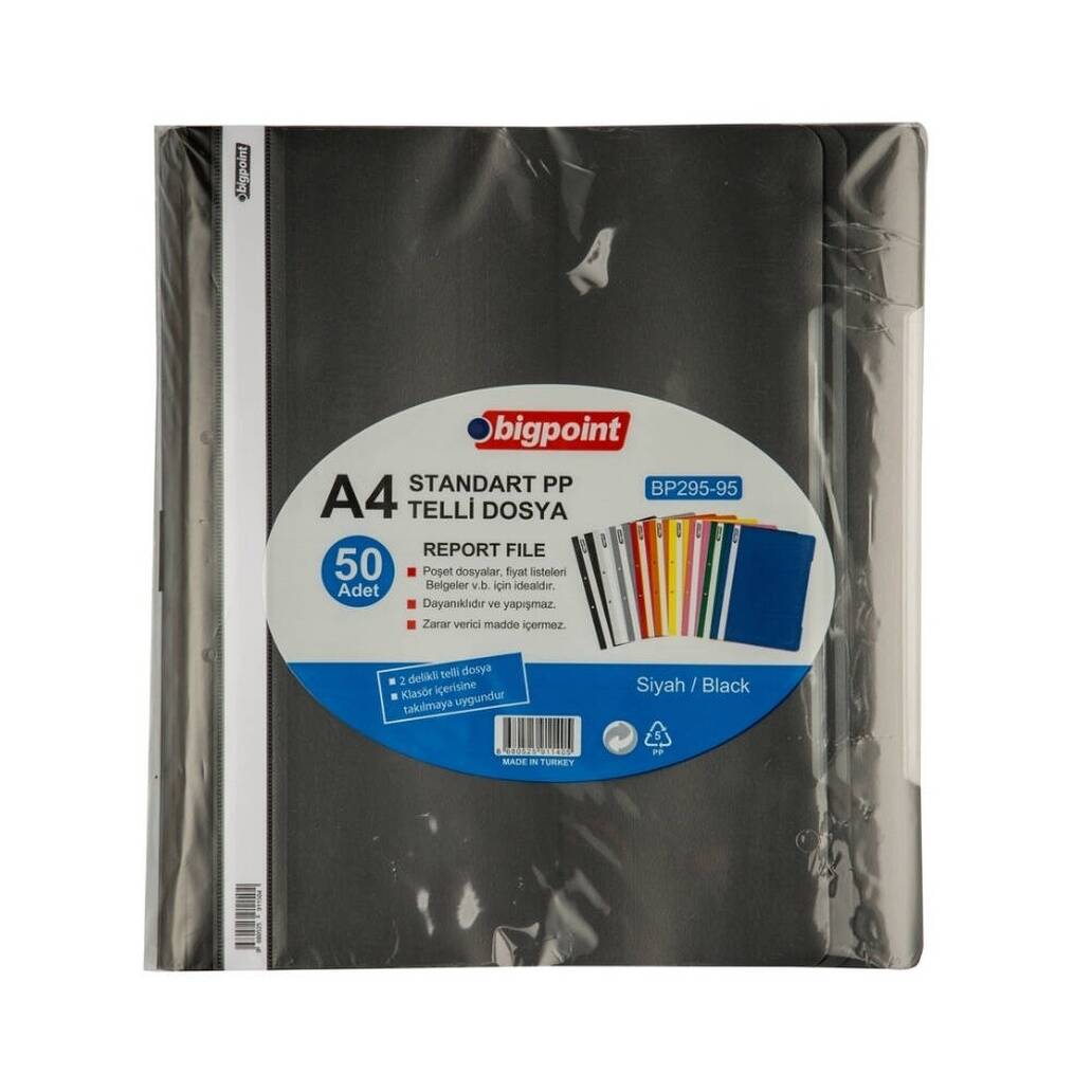 Bigpoint Telli Dosya, siyah renk seçeneğiyle şıklığı, dayanıklı yapısıyla güveni ve 50’li paketiyle ekonomik avantajı bir araya getirir. Belgelerinizi korumak, düzenlemek ve her an elinizin altında bulundurmak için ideal bir tercih olacaktır.
