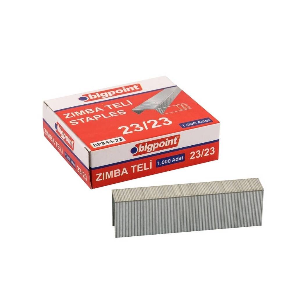 Dayanıklı metal yapısı, tellerin kolay bükülmesini önler ve belgelerinizin uzun süre güvenli bir şekilde saklanmasına yardımcı olur. 1000 adetlik kutu içeriği, uzun vadeli kullanım için ekonomik bir çözüm sunar. No:23/23 ölçüsündeki profesyonel zımba makineleriyle uyumlu olan Bigpoint Zımba Teli, yüksek performanslı ve dayanıklı yapısıyla öne çıkar.