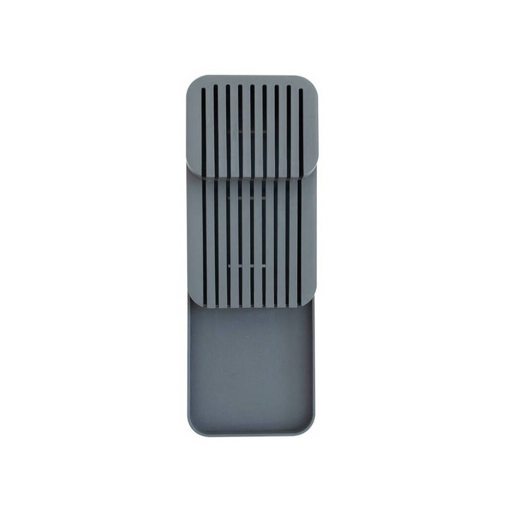 Decobella 2 Sıra Bıçaklık, 18 Bıçak Kapasiteli, Antrasit, mutfaklarda düzen ve güvenlik sağlamak için idealdir. Çekmece içlerinde ya da mutfak tezgâhlarında kullanılarak bıçakların güvenle saklanmasına yardımcı olur. Özellikle küçük mutfaklarda yer tasarrufu sağlarken, büyük mutfaklarda ise düzenli bir görünüm sunar.