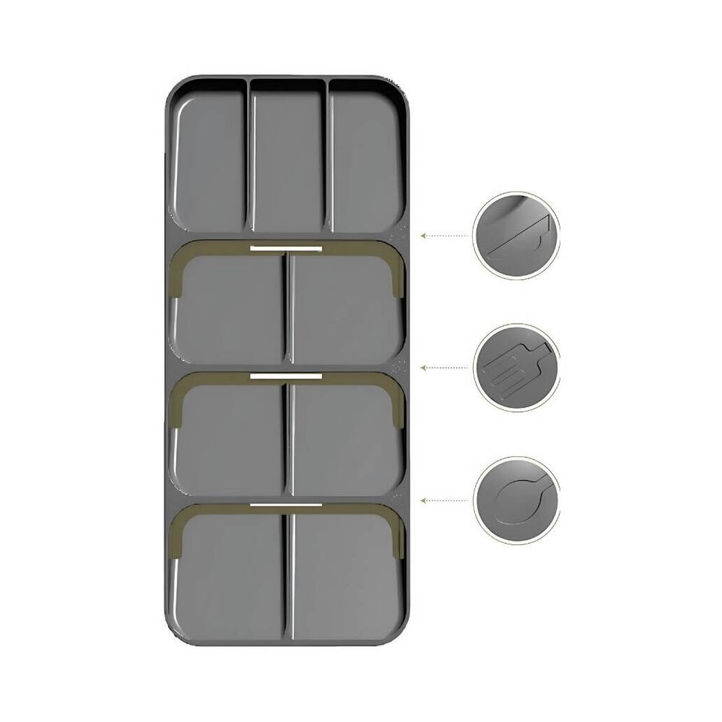 Dayanıklı plastikten üretilen yapısı uzun ömürlüdür ve yoğun kullanıma karşı dirençlidir. Kaymaz tabanı sayesinde çekmece içinde sabit durur ve mutfak gereçlerinin kaymasını engeller. Şık ve fonksiyonel tasarımıyla hem ev mutfaklarında hem de profesyonel kullanım alanlarında tercih edilebilir.