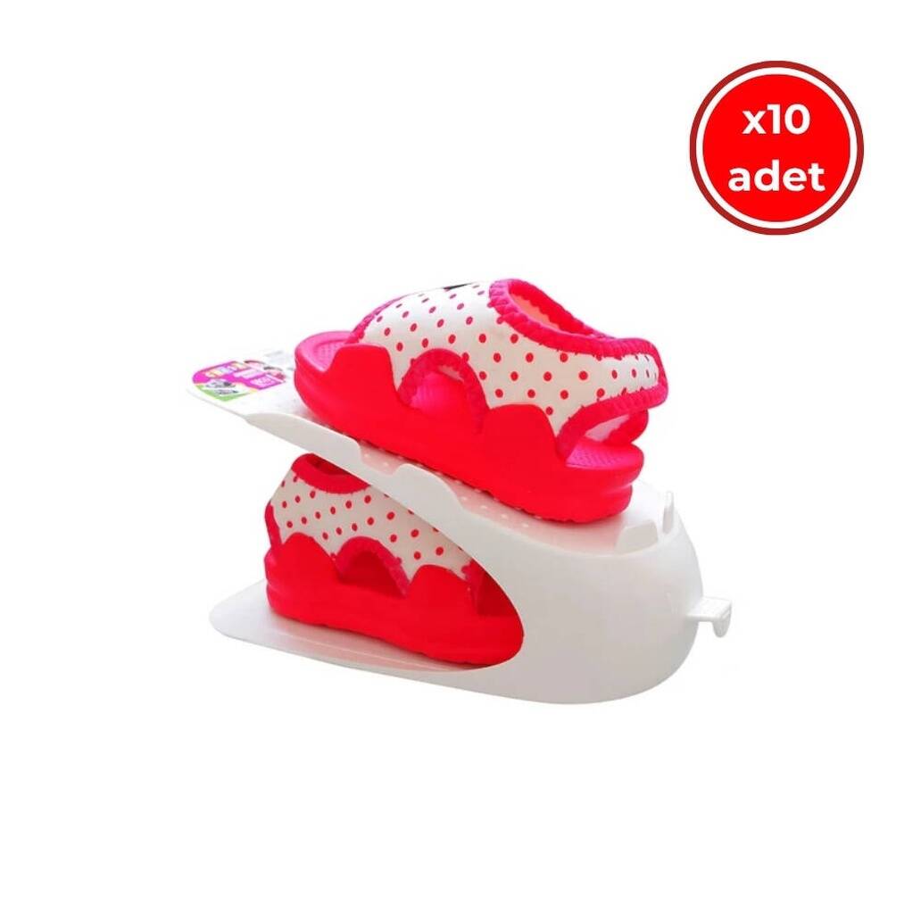 Beyaz rengi, her türlü dolap ve dekorasyon ile uyum sağlayarak estetik bir görünüm sunar. Rampalı tasarımı sayesinde ayakkabılar üst üste konulduğunda bile şeklini korur ve deforme olmaz. Böylece çocuk ayakkabılarınızı tozdan, ezilmeden ve dağınıklıktan koruyabilirsiniz.