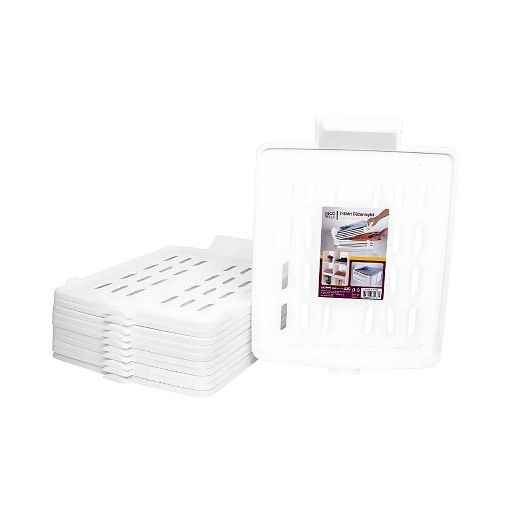 Decobella T-Shirt Düzenleyici, 5 adetlik seti, beyaz rengi ve kırışıklık önleyici ergonomik tasarımı ile giysilerinizi düzenli, kırışmadan ve kolay ulaşılabilir şekilde saklamanızı sağlar. Küçük ama etkili bu set, günlük hayatınızı kolaylaştıracak pratik bir çözümdür.