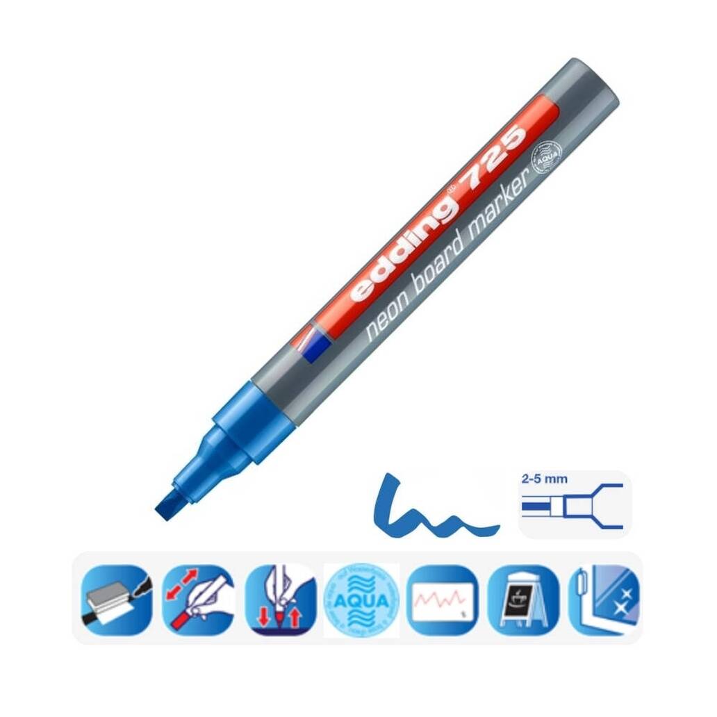 Edding E-725 Beyaz Tahta Kalemi, Fosforlu Mavi, Kolay Kullanım, 2-5 mm geniş bir kullanım yelpazesi sunar: