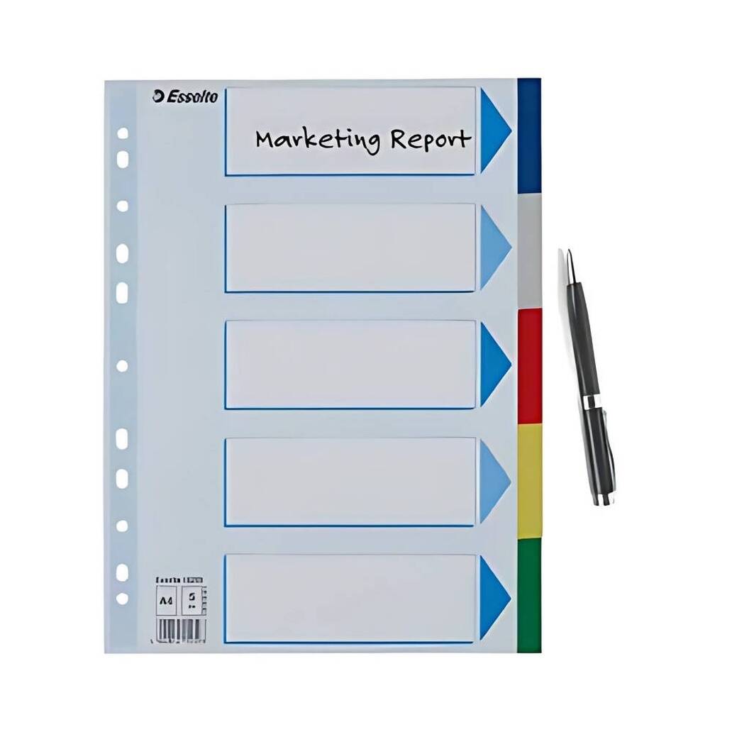Esselte A4 Separatör, 5 Renkli, 115 Mikron PP, Düzenli Arşivleme İçin birçok alanda kullanılabilir: