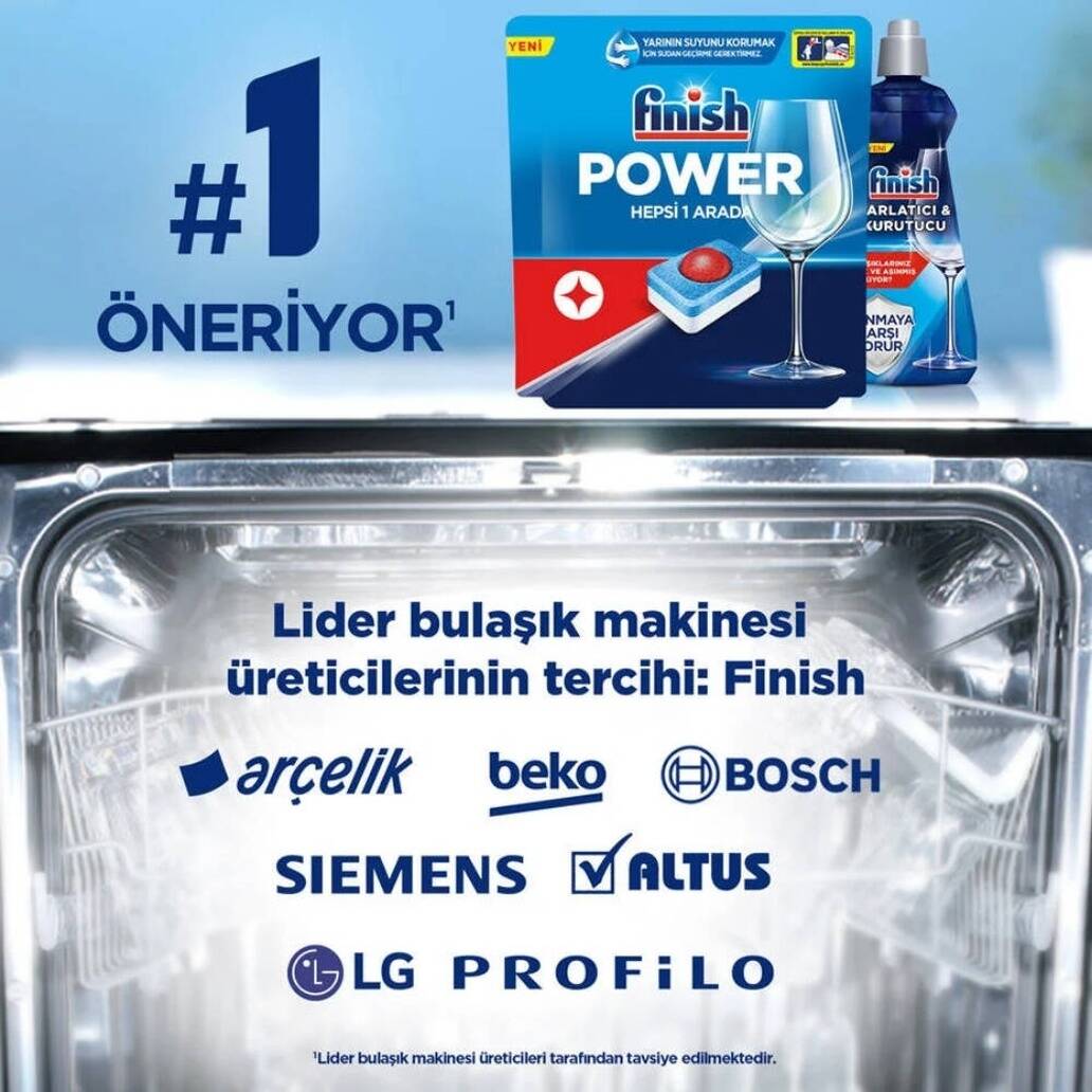 Yağ, kir ve lekeleri tek seferde yok eden, bardak ve tabaklarda ekstra parlaklık sağlayan Finish Hepsi Bir Arada 100’lü Tablet, hem günlük hem de yoğun bulaşık ihtiyaçlarınız için güvenilir bir çözümdür. Ekonomik paketiyle uzun süreli kullanım sağlar ve her yıkamada kusursuz temizlik sunar.
