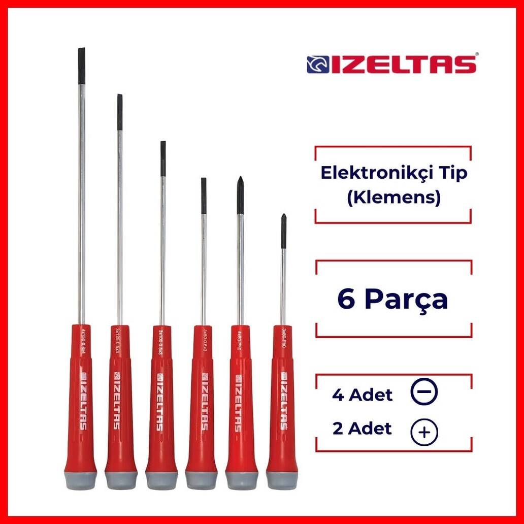 İzeltaş Elektronikçi Klemens Tornavida Seti – 6 Parça: Hassas elektronik işler için özel olarak tasarlanmıştır.