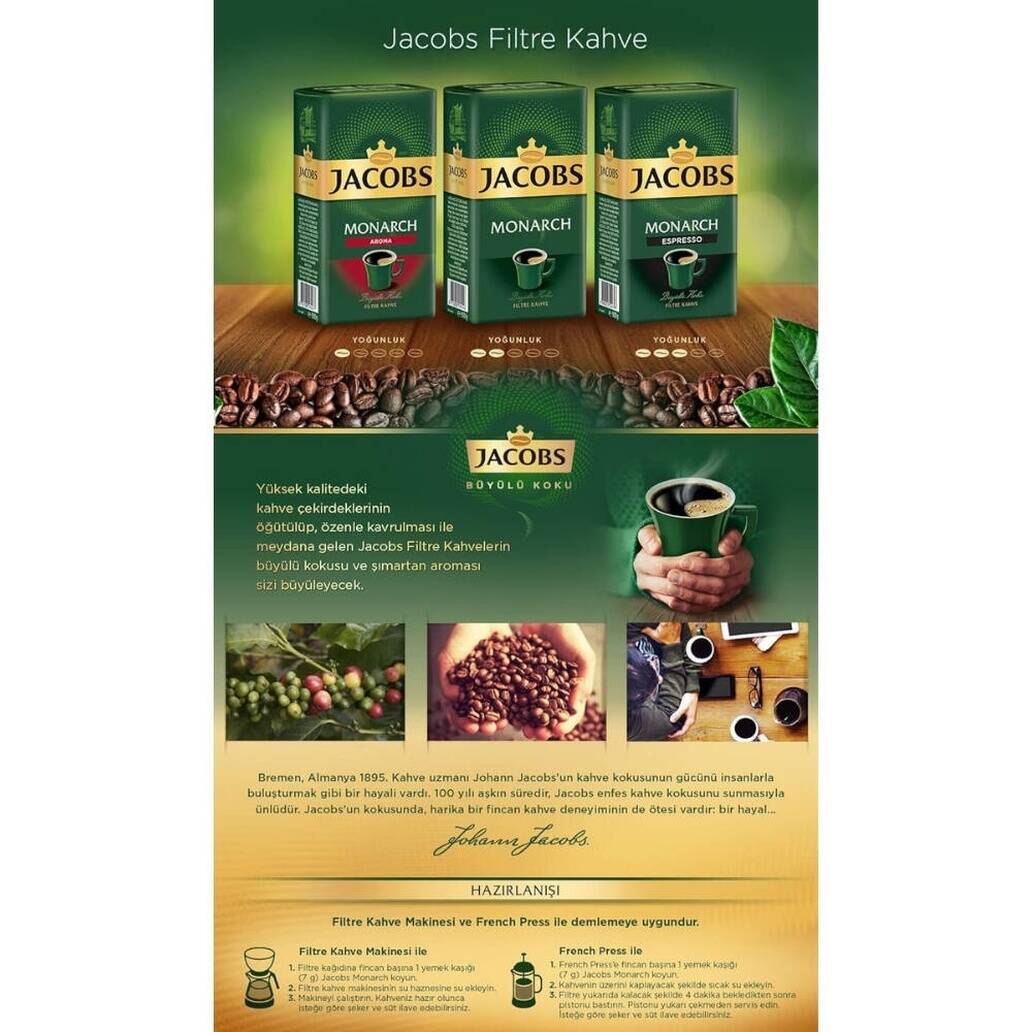 Jacobs Monarch 500 g Filtre Kahve, geniş kullanım imkânı sunan bir üründür: