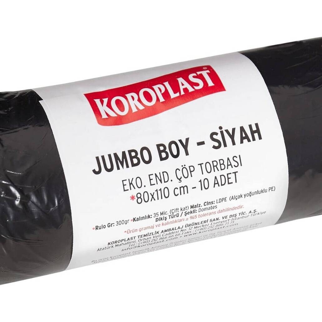 Koroplast Çöp Torbası Eko Endüstriyel Siyah Jumbo 80x110 cm 300 gr, 10’lu Paket, geniş kullanım alanlarıyla öne çıkar: