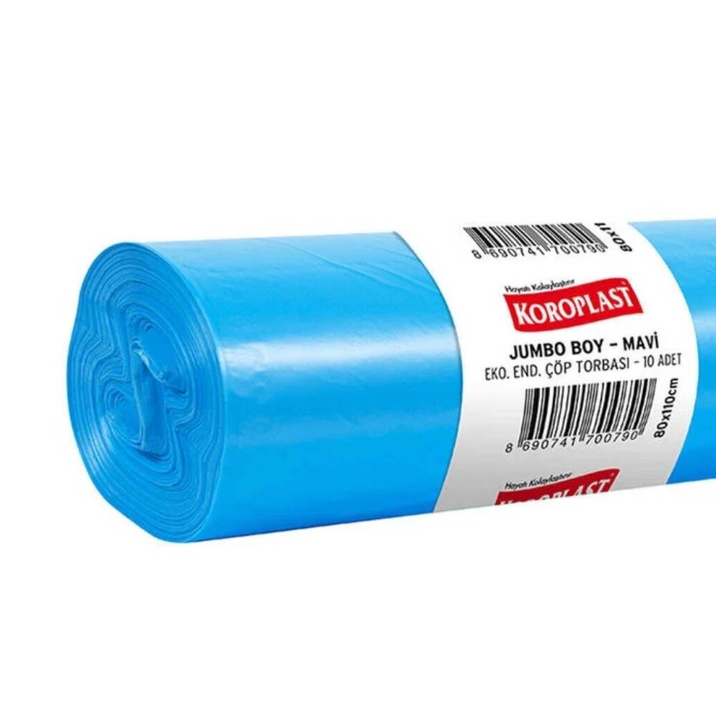 Koroplast Eko Jumbo Boy Çöp Torbası (80x110 cm, Mavi, 10’lu Paket), dayanıklılığı ve geniş kapasitesi ile öne çıkar. Kalın yapısı sayesinde sızdırmaları ve yırtılmaları engeller. Mavi rengi, atıkların ayrıştırılmasını kolaylaştırarak özellikle profesyonel kullanım alanlarında avantaj sağlar.