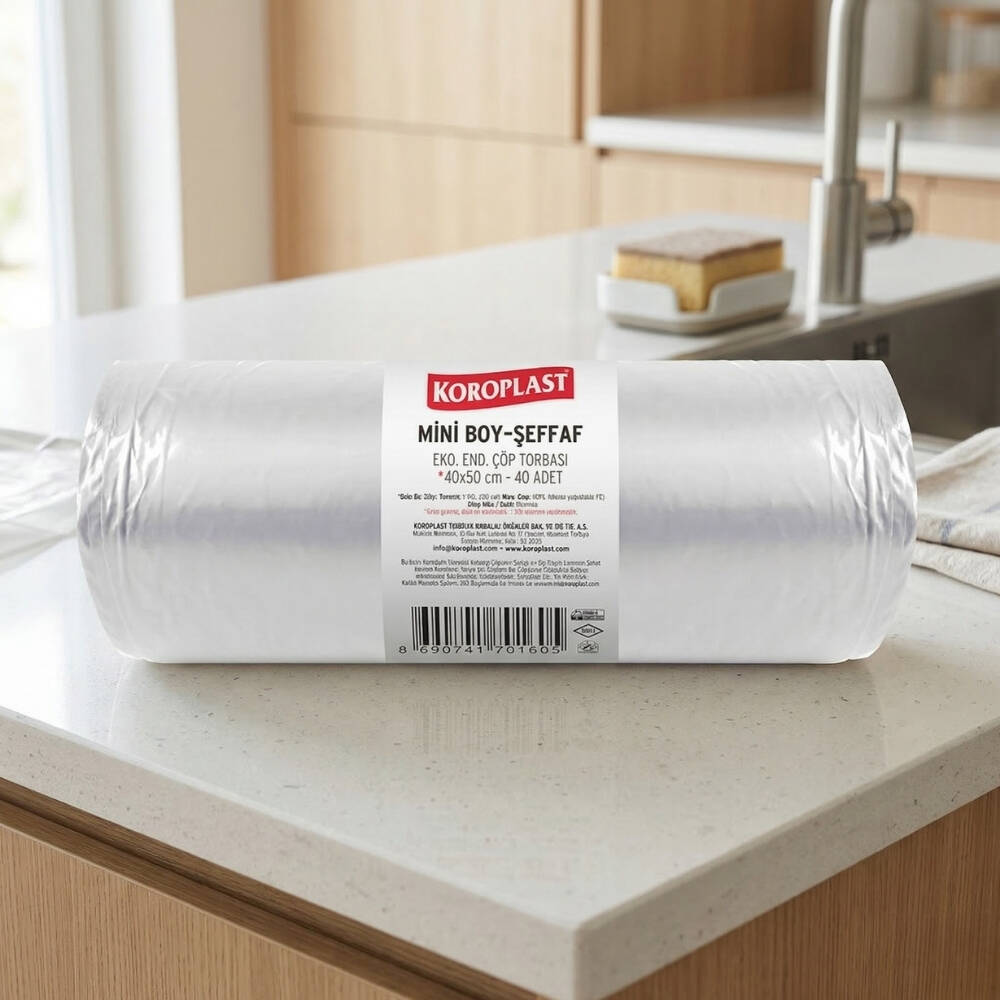 Koroplast Eko Şeffaf Mini Boy Çöp Torbası, küçük ölçekli çöp ihtiyaçları için çok yönlü bir kullanım sunar: