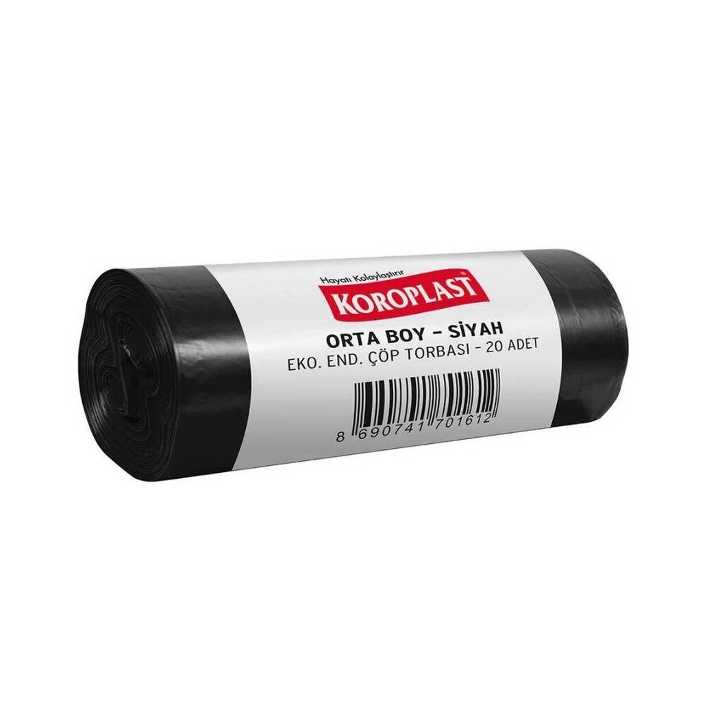 Evlerde, ofislerde veya ticari alanlarda düzen ve hijyen sağlamak için Koroplast Eko Siyah Orta Boy Çöp Torbası (55x60 cm, 20’li Paket), dayanıklılığı, pratik kullanımı ve ekonomik paket avantajı ile en doğru tercihlerden biridir.