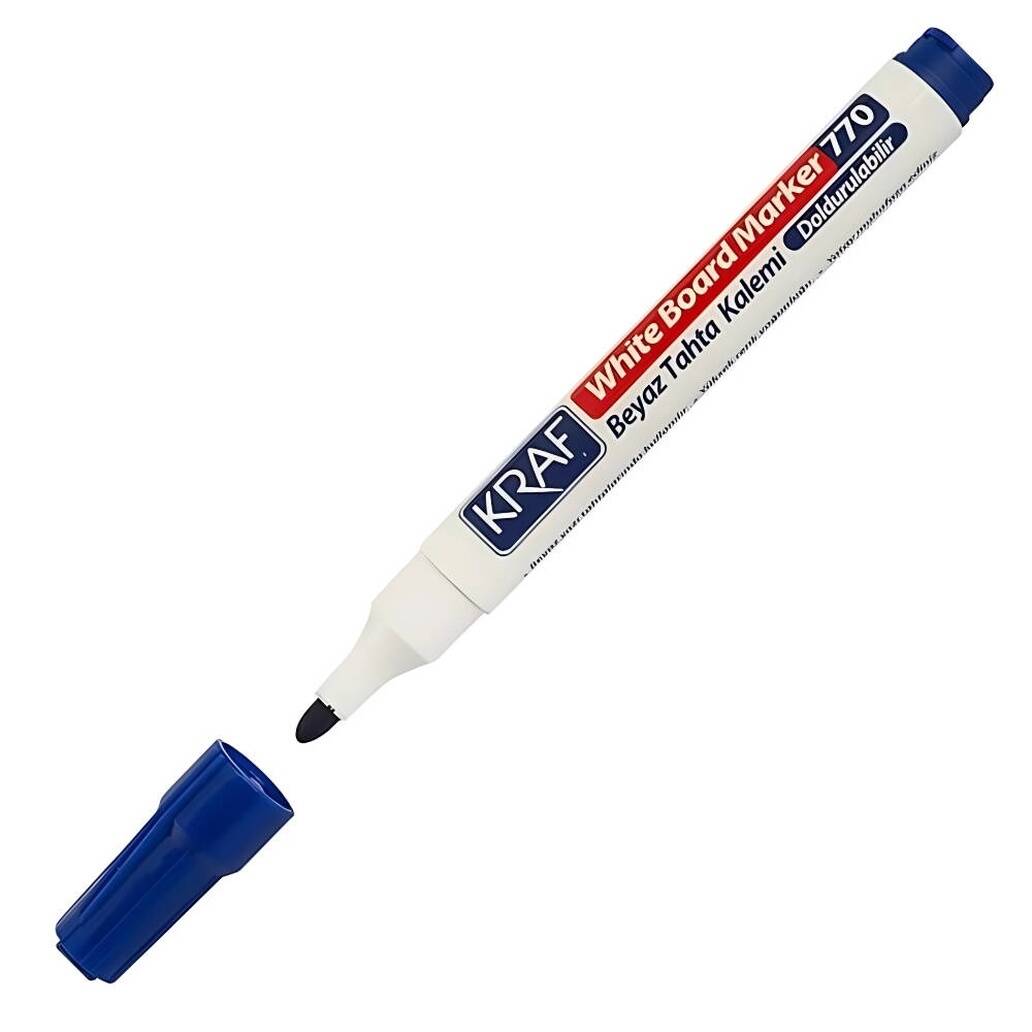 Uzun ömürlü, ekonomik ve profesyonel bir beyaz tahta kalemi arıyorsanız, Kraf 770 Beyaz Tahta Kalemi, Mavi, Doldurulabilir, Uzun Ömürlü sizin için doğru tercihtir. Hem iş hem de eğitim ortamlarında güvenilir performansı ile her zaman yanınızda olacaktır.