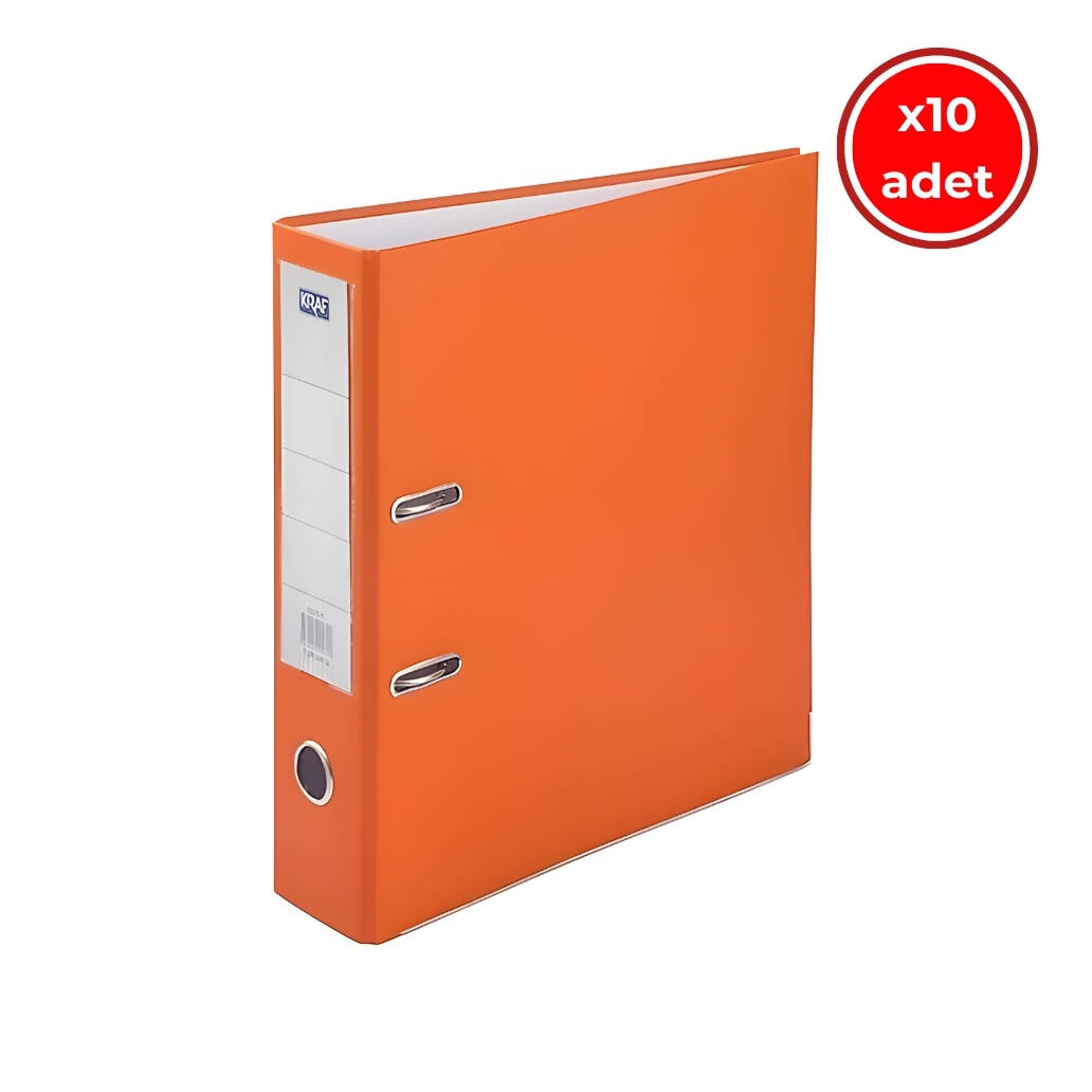 Kraf Büro Klasörü 10 Adet Geniş A4 2 Halkalı Turuncu, belgelerini düzenli, güvenli ve yüksek kapasiteli şekilde saklamak isteyen kullanıcılar için ideal bir tercihtir. Canlı rengi ve fonksiyonel yapısıyla ofis ve arşiv düzenine dinamizm kazandırır.