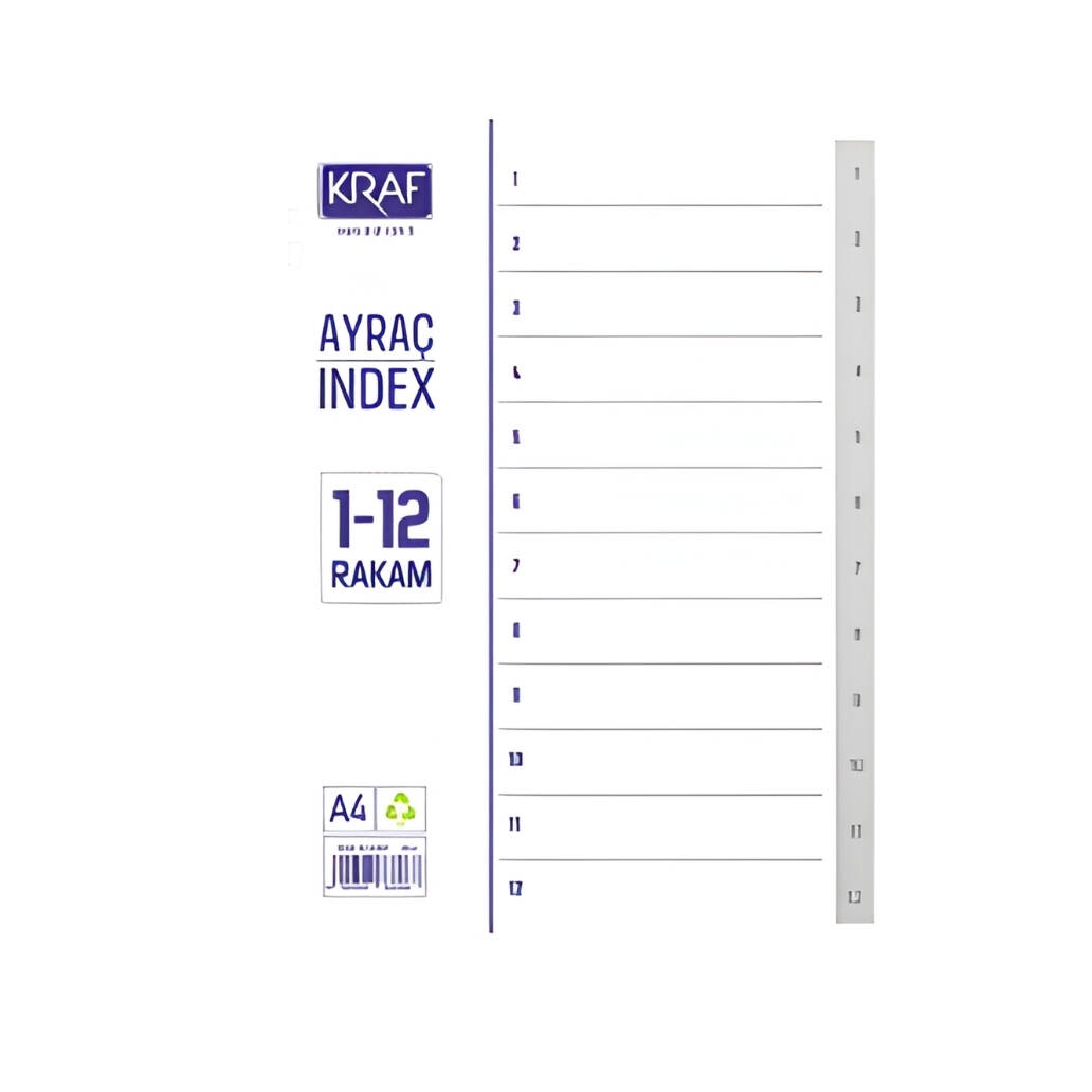 Kraf Seperatör 1–12 Rakam Klasör İçi Ayraç, belgelerini sayısal düzende saklamak, düzeni korumak ve hızlı erişim sağlamak isteyen kullanıcılar için ideal bir tercihtir. Sistemli yapısıyla ofis ve arşiv düzeninin temel parçalarından biridir.