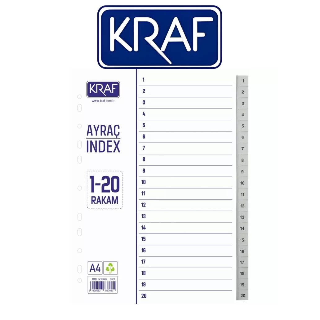 Kraf Seperatör 1–20 Rakam Klasör İçi Ayraç, belgelerini sayısal düzende, detaylı ve erişilebilir şekilde saklamak isteyen kullanıcılar için ideal bir tercihtir. Sistemli yapısıyla ofis ve arşiv düzeninin vazgeçilmez yardımcılarından biridir.