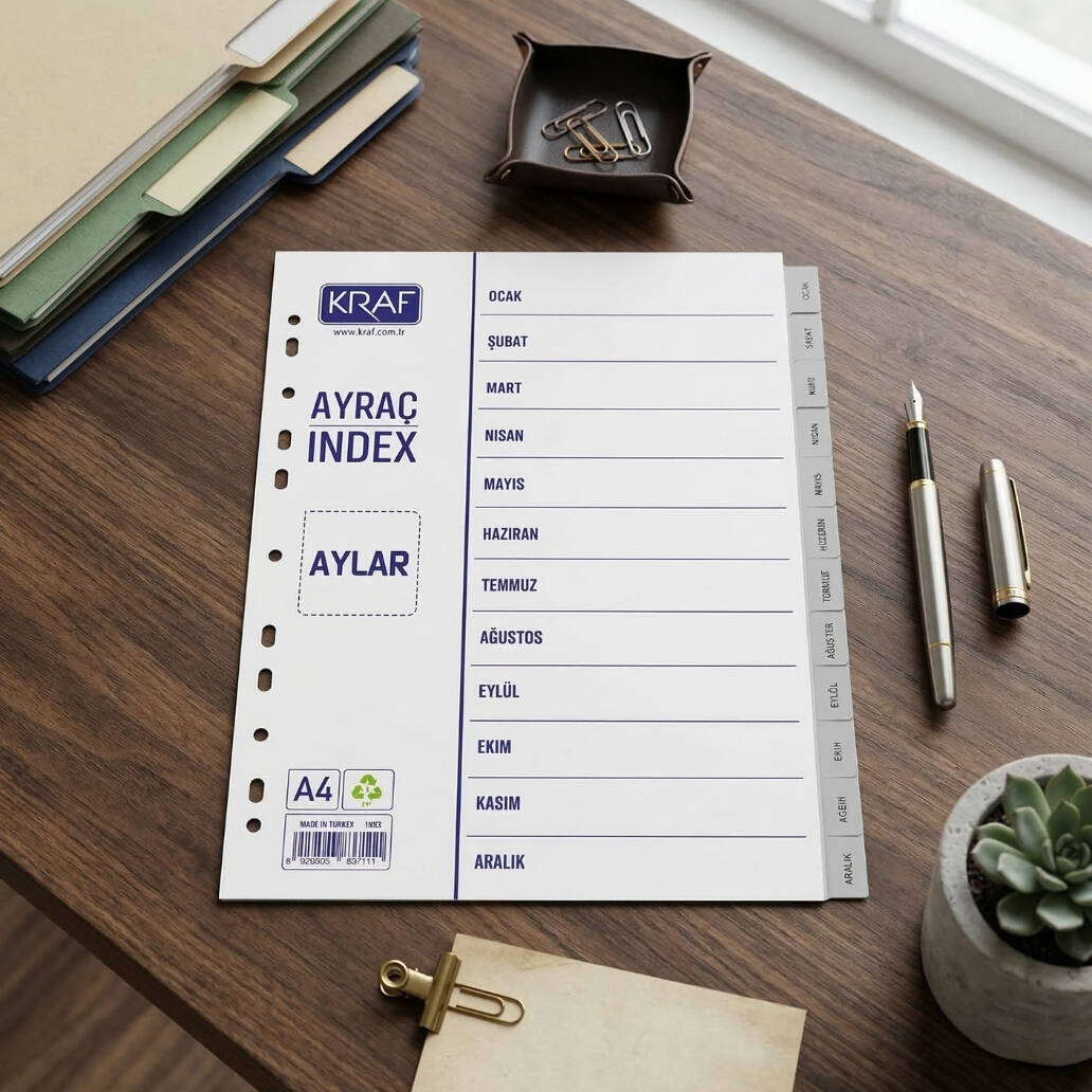Klasör içi kullanım için özel olarak tasarlanan bu seperatör, özellikle aylık evrak takibi, finansal dokümanlar, fatura ve muhasebe belgeleri, resmi yazışmalar ve planlama dosyaları için idealdir. Belgelerin kronolojik sırayla düzenlenmesini kolaylaştırarak daha sistemli bir arşiv yapısı oluşturmanıza yardımcı olur.