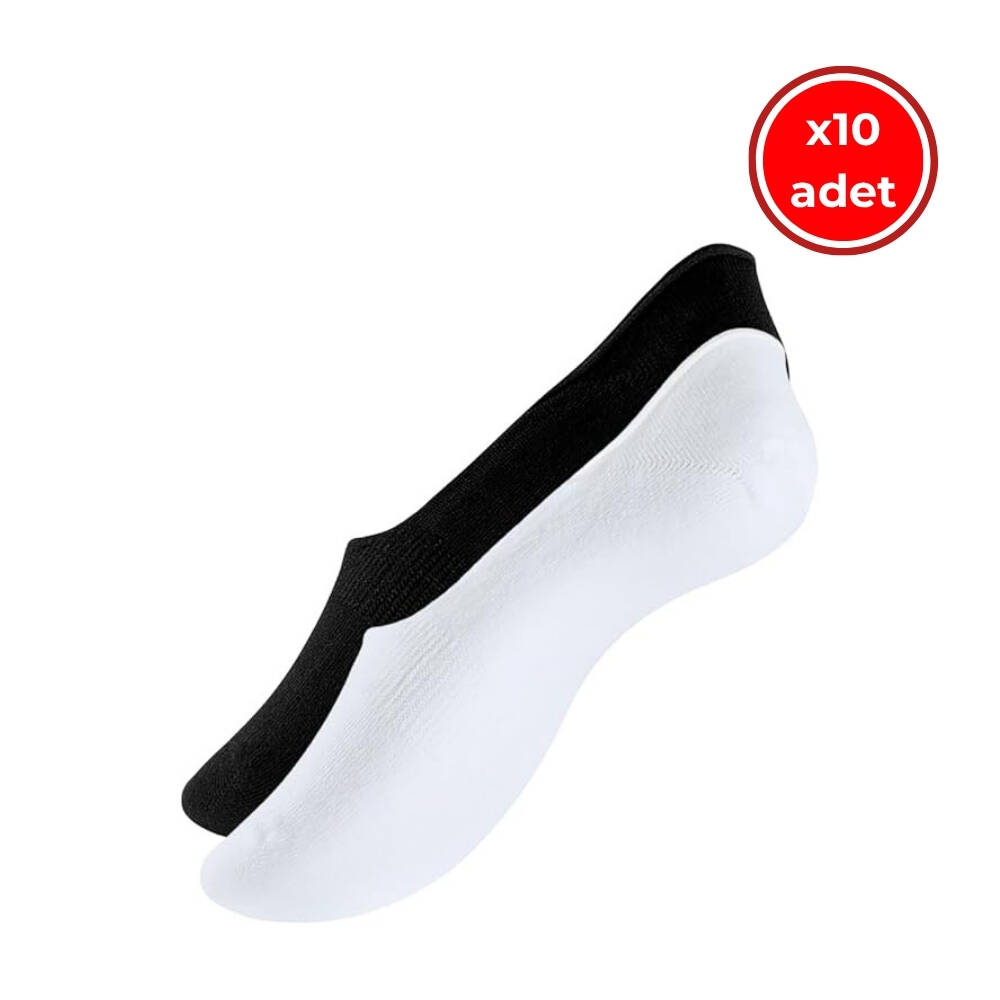 Set içerisinde yer alan siyah ve beyaz renklerde çoraplar, her kombine kolayca uyum sağlar. Hem klasik hem sportif stiller için ideal olan bu görünmez çoraplar, dört mevsim kullanıma uygundur.