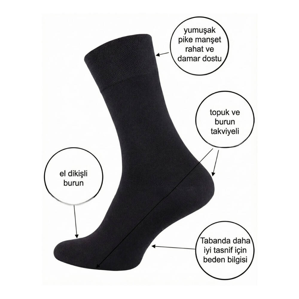 Ayakta sıkma yapmayan soft konfor lastiği, tüm gün boyunca ideal tutuş sağlarken bacakta iz bırakmaz. Elastan desteği ise çorabın esnekliğini artırarak kullanım sırasında hem konfor hem de form istikrarı sunar. Hem iş hayatında takım elbise altında hem de günlük giyimde konforu önemseyen kullanıcılar için güvenilir ve şık bir seçenektir. Ayrıca OEKO-TEX ve BSCI standartlarına uygun olarak üretilmiş olması, ürünün hem insan sağlığına hem de etik üretim kriterlerine uyduğunu gösterir.