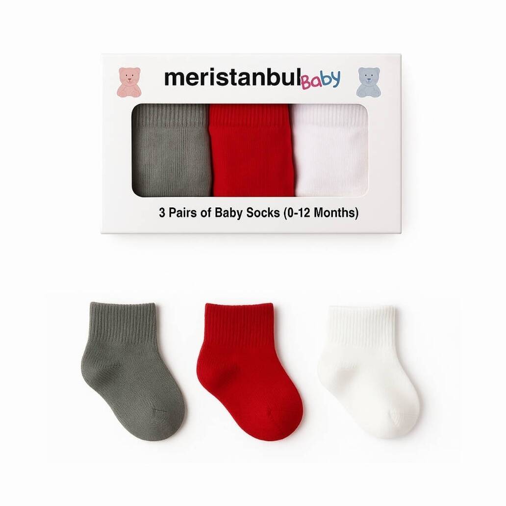 Meristanbul Bebek Çorap Seti 0–3 Ay Kırmızı, Gri ve Beyaz, farklı kullanım ihtiyaçlarına uygundur:
