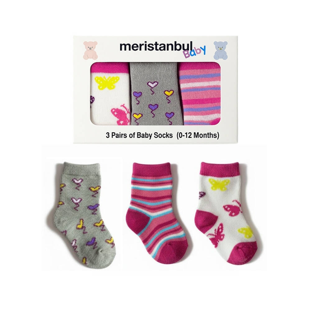 Meristanbul Bebek Çorap Seti 3–6 Ay Kalp, Kelebek ve Çizgili, çok yönlü kullanım sunar:
