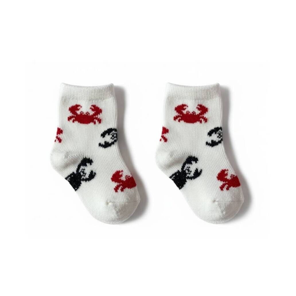 Set içerisinde yer alan üç farklı model, yaz enerjisini yansıtan deniz temalı desenlerden oluşur. Yengeç figürlü çorap, neşeli ve canlı bir görünüm sunarken; yelken desenli model klasik ve sade bir deniz havası katar. Gözlük desenli çorap ise modern ve eğlenceli bir stil oluşturur. 3–6 ay arası bebeklerin ayak ölçülerine uygun olarak tasarlanan çoraplar, ayağı nazikçe sarar, sıkma yapmaz ve gün boyu rahat bir kullanım sağlar.