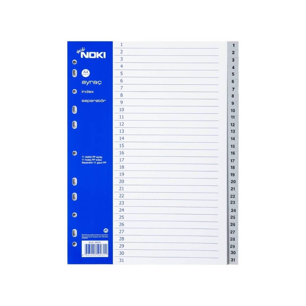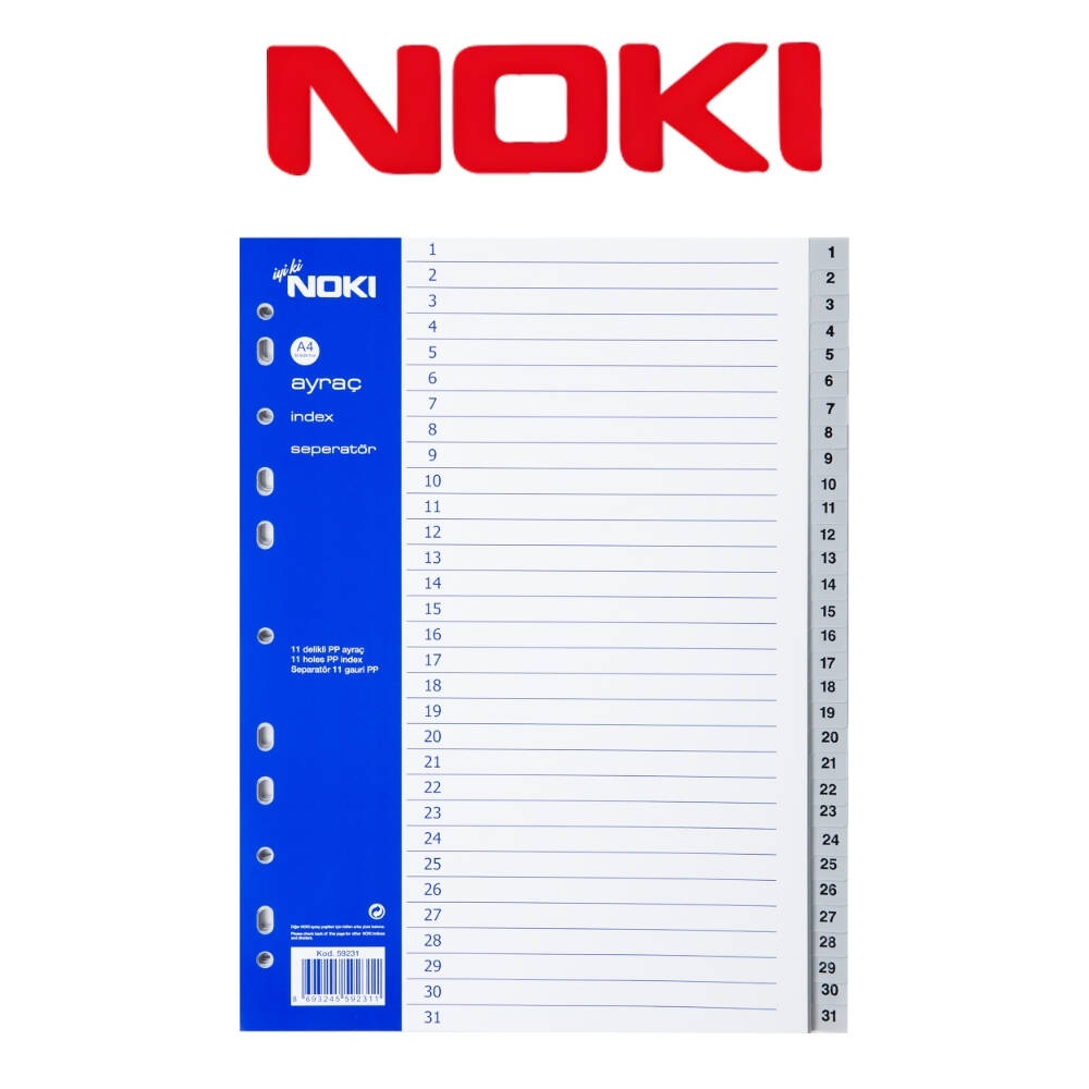 Noki A4 Separatör, 1-31 Rakamlı, Düzenli Arşivleme İçin, Uzun Ömürlü, çok çeşitli alanlarda kullanım imkânı sunar: