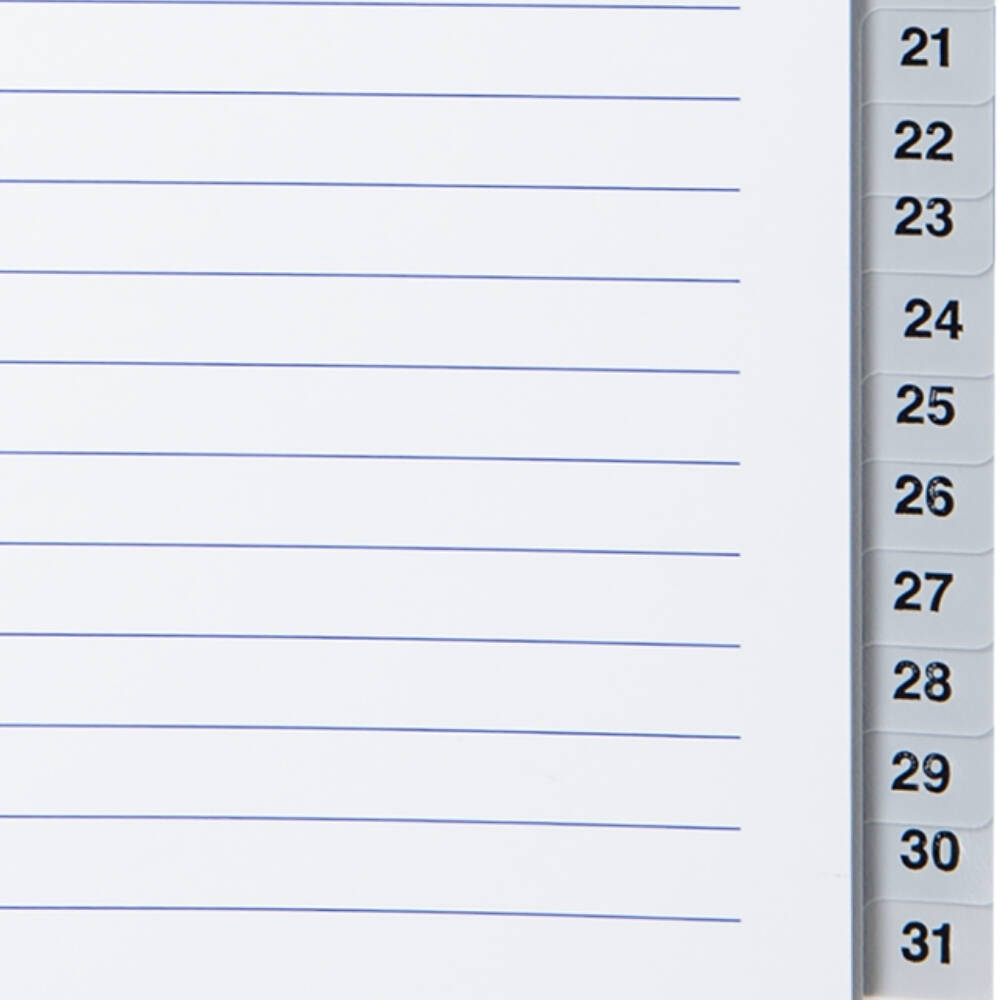 Gün Bazlı Düzen: 1’den 31’e kadar numaralı bölmeleriyle ay boyunca belgelerinizi kolayca kategorize edebilirsiniz.