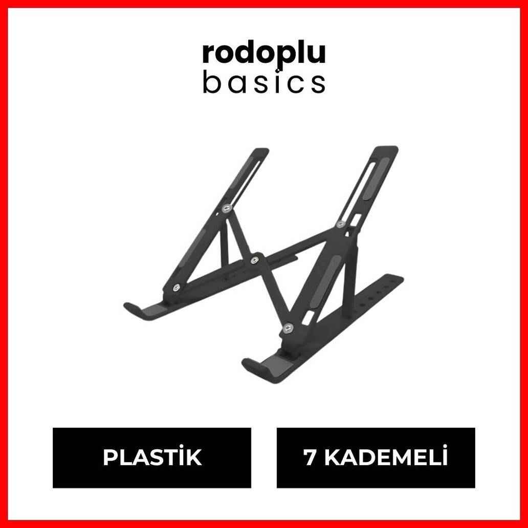 Rodoplu Basics Ayarlanabilir Laptop Standı, dizüstü bilgisayarlar, tabletler ve diğer cihazlar için sağlam bir destek sağlar. 7 farklı yükseklik ve eğim seçeneği, cihazınızı göz hizasına getirerek ergonomik bir çalışma ortamı oluşturur. Dayanıklı ve hafif malzemelerden üretilmiş olan bu stand, katlanabilir yapısıyla kolay taşınabilir ve depolanabilir.