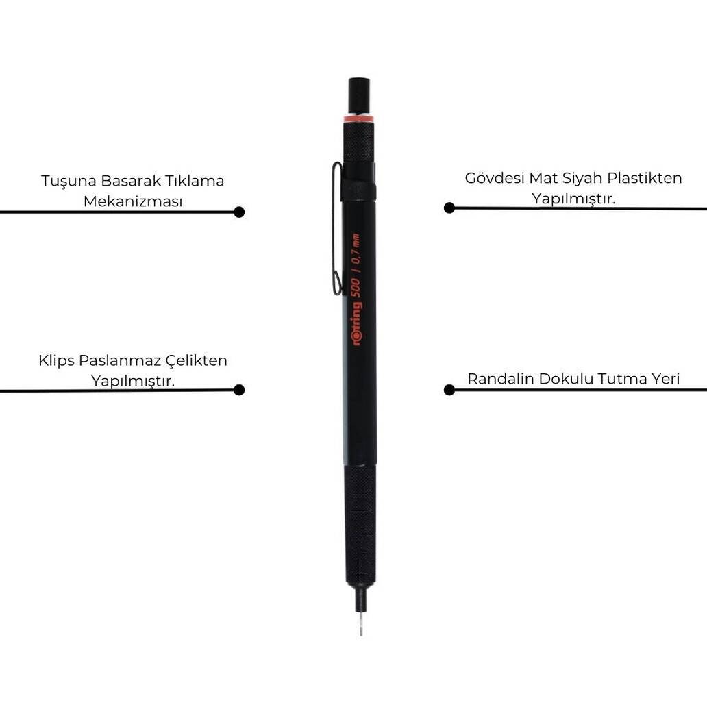 Rotring 500 Versatil Kalem 0.7 mm Siyah, farklı kullanım ihtiyaçlarına hitap eder: