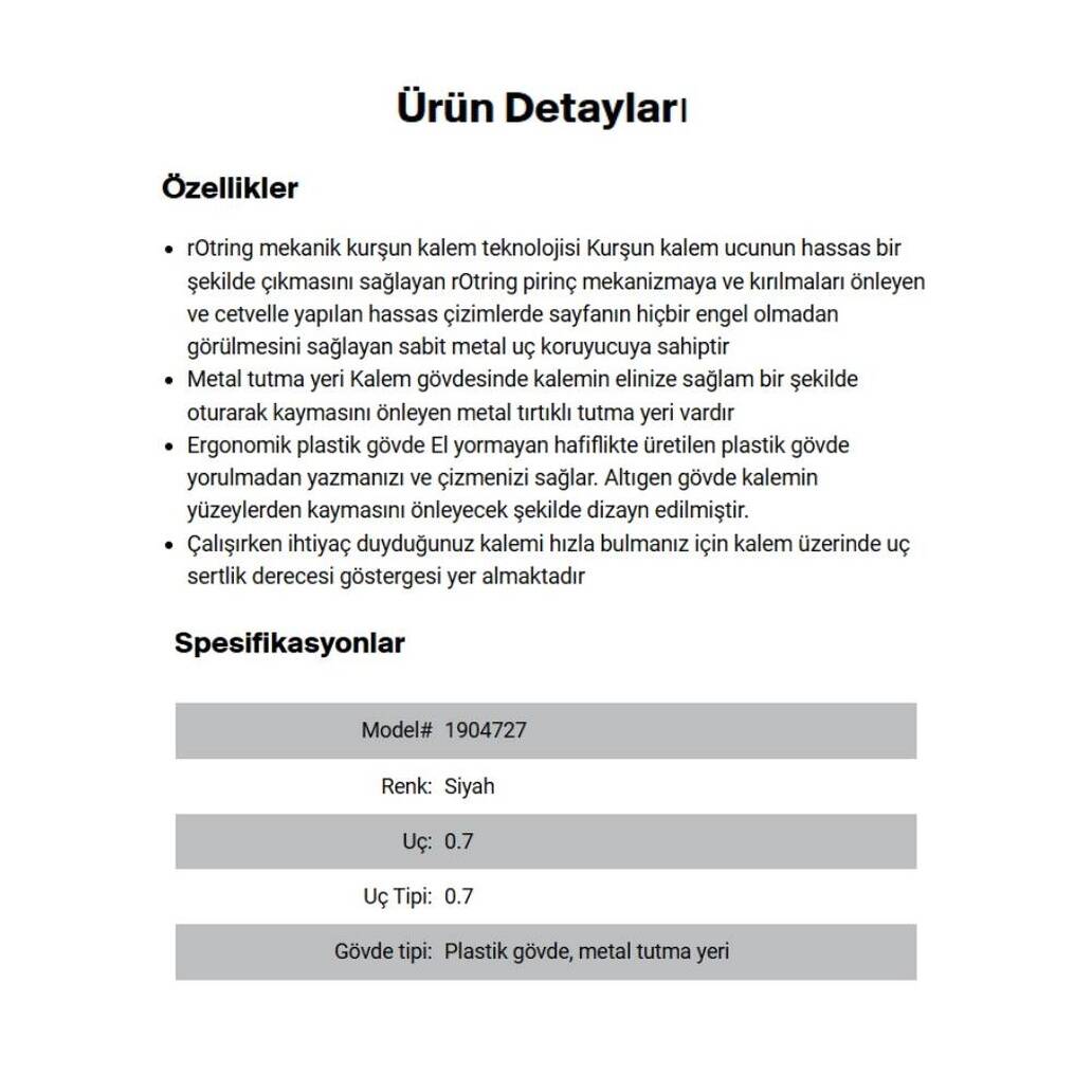 Rotring Kalitesi: Güvenilir, dayanıklı ve yüksek performanslı yapısı ile profesyonel etkili çözümler sunar.