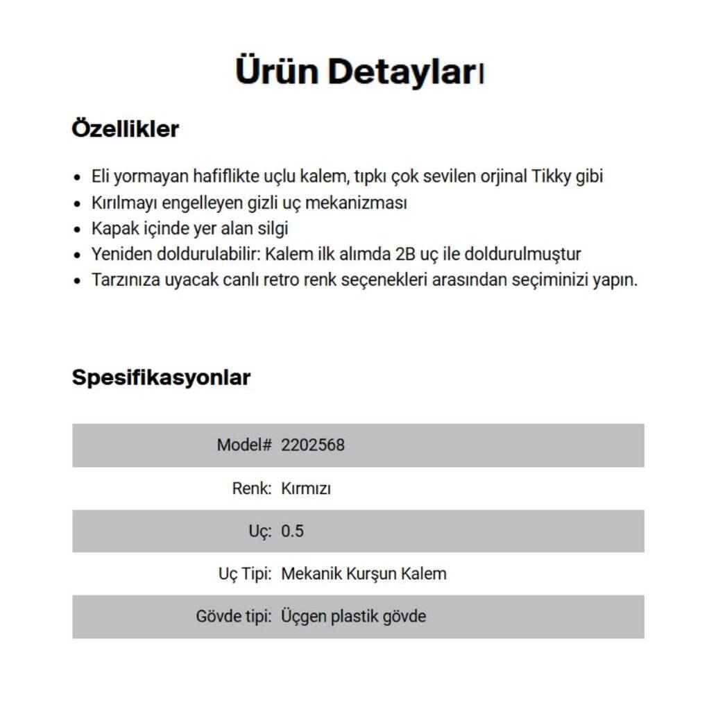 Rotring Tikky Retro 0.5 mm Metalik Kırmızı, hafif ama sağlam gövde yapısı ve kauçuk tutma alanı ile yazımda maksimum konfor sunar. Hassas uç mekanizması, yazım sırasında pürüzsüz ve kesintisiz mürekkep akışı sağlar.