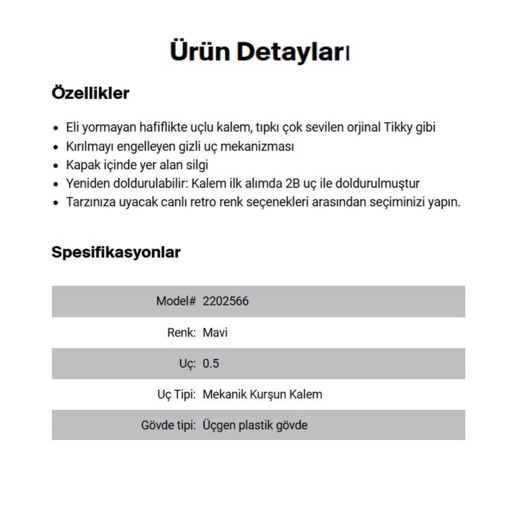 Rotring Tikky Retro 0.5 mm Metalik Mavi, hafif ama sağlam gövde yapısı ve kauçuk tutma alanı ile uzun süreli yazılarda konfor sağlar. Hassas uç mekanizması sayesinde akıcı ve dengeli bir yazım deneyimi sunar.