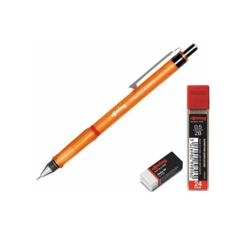 Set İçeriği: 1 adet Rotring Visuclick kalem, 1 adet silgi, 1 kutu yedek uç